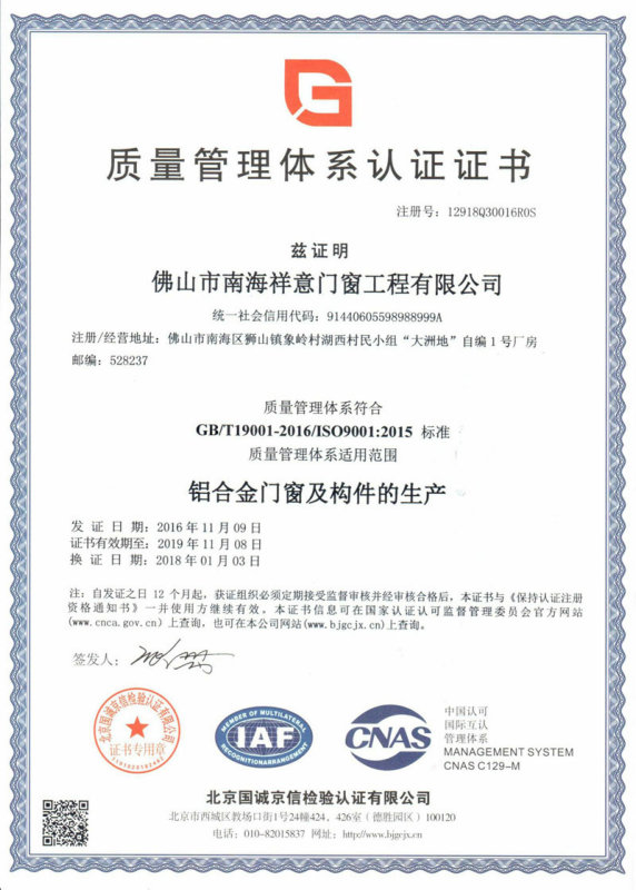 廣東祥意門窗工程有限公司是一家專注鋁合金門窗工程及門窗加工、制作的優(yōu)質(zhì)企業(yè)。公司憑著精湛的技術(shù)服務和優(yōu)良的售后服務,已成功完成多個優(yōu)質(zhì)項目。